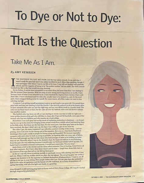 Anyone who has seen me in the last 20 years knows that I did not take my own advice about hair dye, but I still stand behind the theme of self-acceptance in this 2005 essay that appeared in The Plain Dealer Sunday Magazine.
